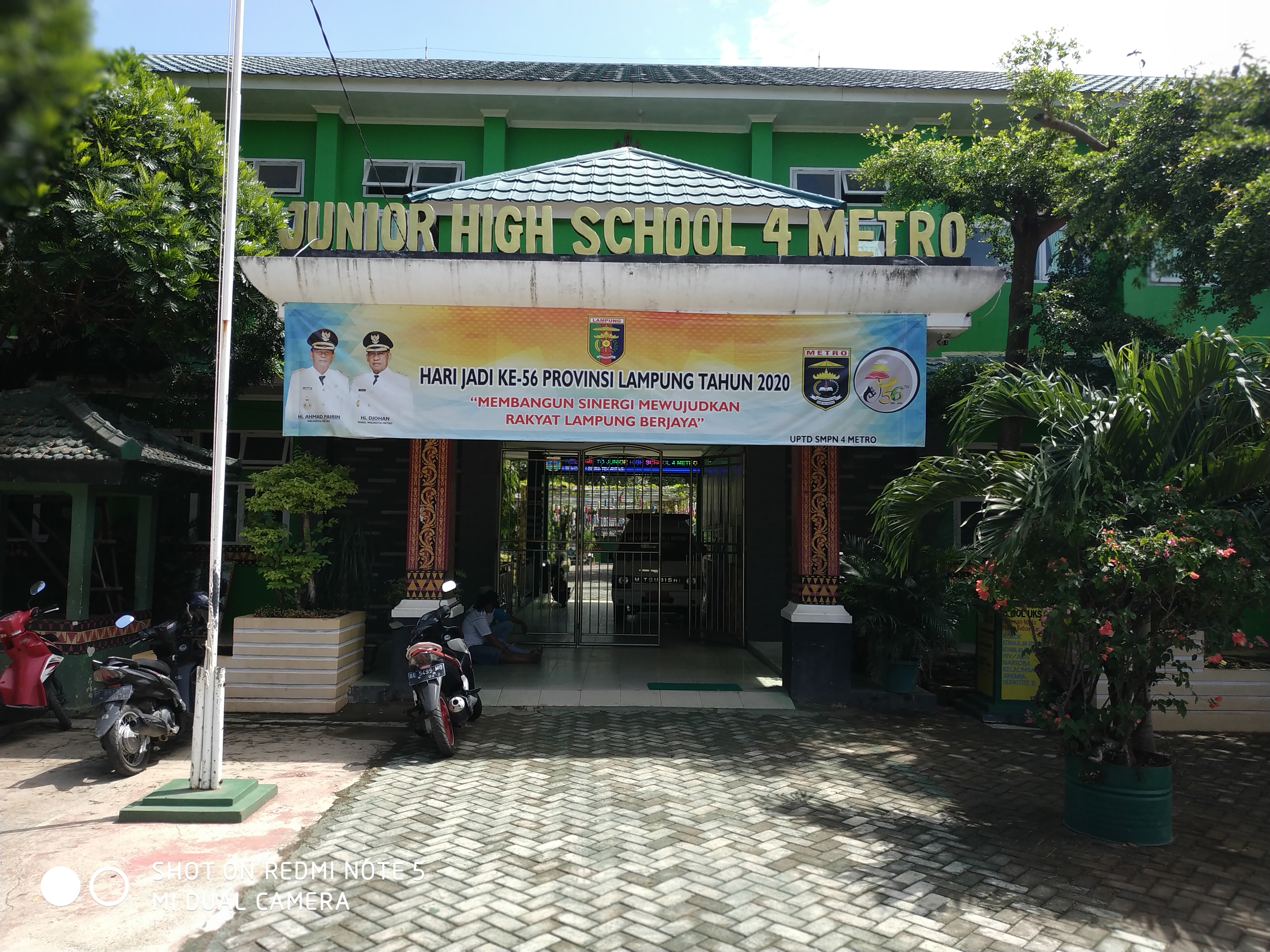 Kepala sekolah SMP Negeri 4 Metro Sunanto,S.Pd,.M.Pd, melalui Waka kesiswaan Bambang Waluyo mengatakan kegiatan belajar mengajar untuk siswa siswa SMP Negeri 4 Metro dilaksanakan dari rumah dan dimonitor oleh guru kelas masing-masing secara online.