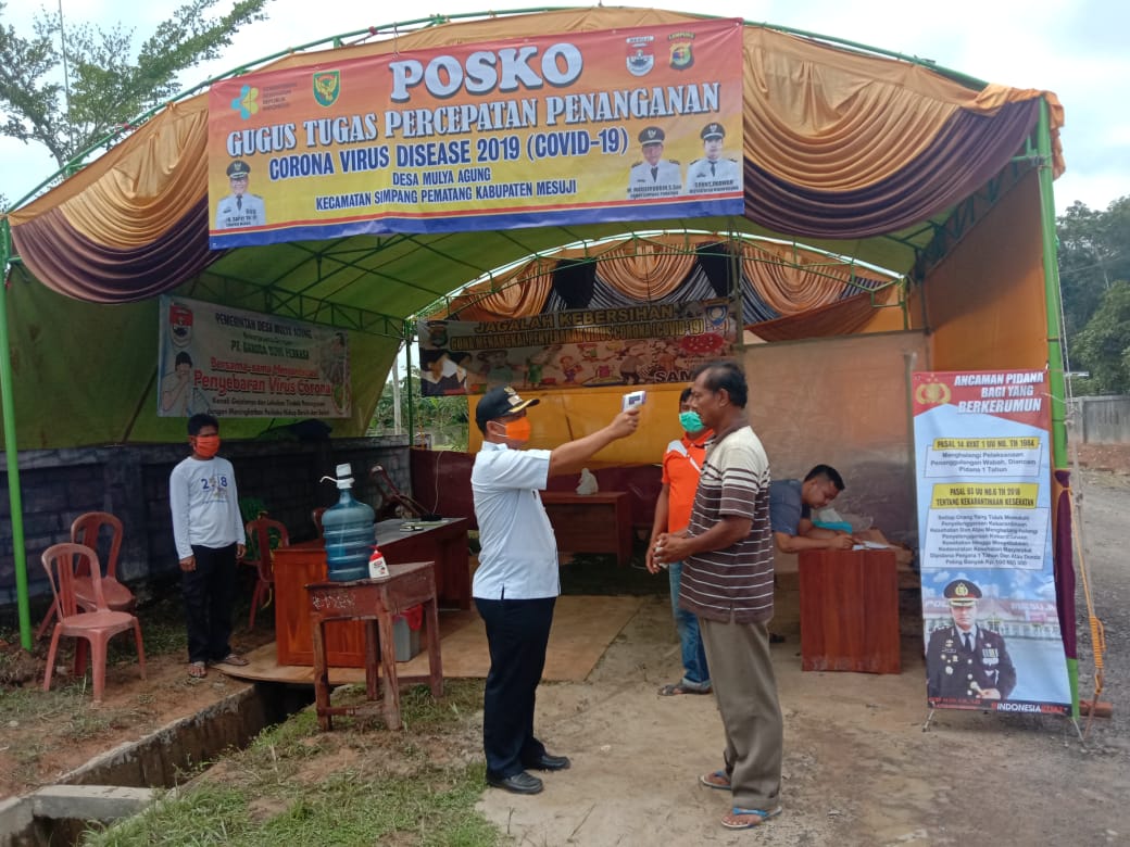 Dikatakan Kepala Desa Mulya Agung Sony Imawan, Hari ini kita bersama perangkat desa dan masyarakat sedang melakukan penyemprotan disinfektan pada fasilitas umum mulai dari Mushola, Pos Ronda (Gardu), tak hanya penyemprotan kita juga membersihkan rumah panti jompo dan panti anak (yatim) dengan melakukan pengepelan”, Ungkapnya kepada wartawan saat ditemui dirumahnya.