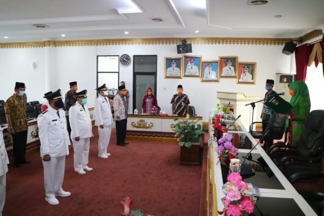 Prosesi pelantikan dan pengambilan sumpah jabatan dilakukan sesuai protokol kesehatan Pencegahan Covid 19 yakni seluruh pejabat yang dilantik dan bupati mengenakan masker. Dan posisi berdiri maupun duduk diatur jaraknya.