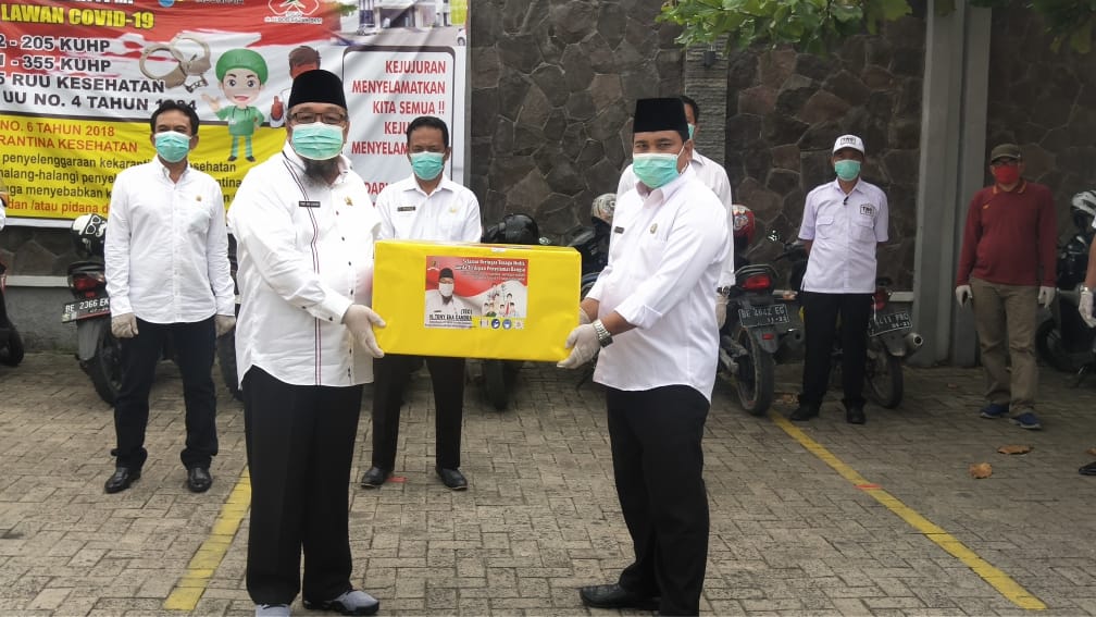 Adapun bantuan tersebut terdiri dari 50 Pcs APD untuk RSUD dr. Bob Bazar Kalianda, 108 Pcs APD untuk 12 Puskesmas Rawat Inap, dan 90 Pcs APD untuk 15 Puskesmas Non Rawat Inap Se-Kabupaten Lampung Selatan.