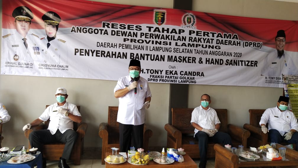Lampung, Cyberkatulistiwa.com – Ketua Komisi IV DPRD Provinsi Lampung, sekaligus selaku Ketua Fraksi Partai Golkar DPRD Provinsi Lampung H. Tony Eka Candra (TEC) melaksanakan Reses dalam rangka menyerap aspirasi masyarakat dan menyampaikan program pembangunan yang tertuang di dalam RPJMD Provinsi Lampung Tahun 2019-2024. Kegiatan Reses digelar di Kecamatan Jati Agung Kabupaten Lampung Selatan, Minggu (19/4/2020).