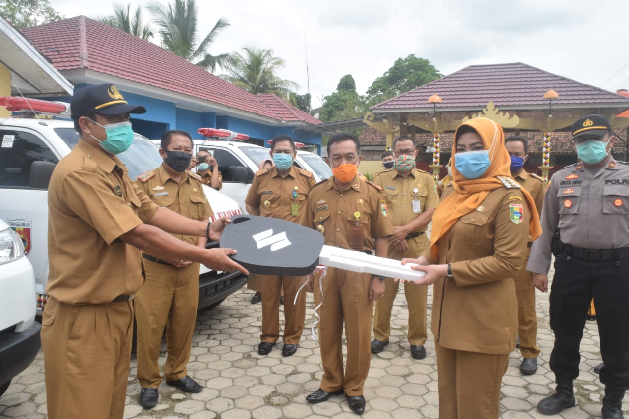 Tanggamus, Cyberkatulistiwa.com – Bupati Tanggamus Hj. Dewi Handajani, menyerahkan secara resmi 9 unit Ambulan Pekon untuk Kecamatan Pugung, di Halaman Kantor Kecamatan Pugung. Senin,27 April 2020.