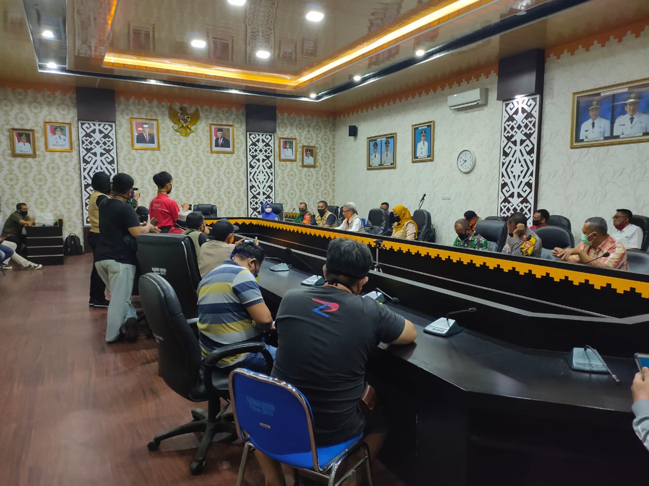Sekertaris Kota Metro A.Nasir AT, didampingi Dandim 0411/LT Letkol Czi Burhanuddin dan Kapolres Metro AKBP Retno Prihawati beserta anggota satgas, menyampaikan permohonan maaf atas kekeliruan yang disampaikan mengenai keberadaan pasien positif covid-19 warga metro tersebut.