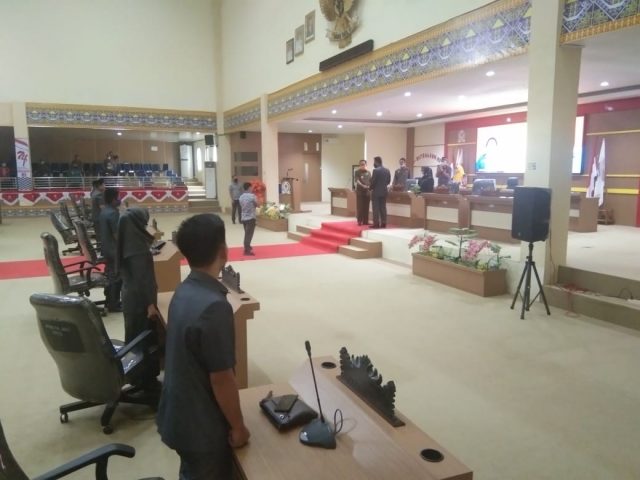 Rapat Peripurna yang di Pimpin langsung ketua DPRD Mesuji Elfianah, yang dihadiri Staf Ahli Bidang Hukum dan Politik Drs. Hamdani yang mewakili Bupati Mesuji, Wakil Ketua dan Anggota DPRD Mesuji,Ketua KPUD Mesuji, Pejabat Eselon II dan III Lingkup Pemkab Mesuji, beserta Danramil Mesuji.