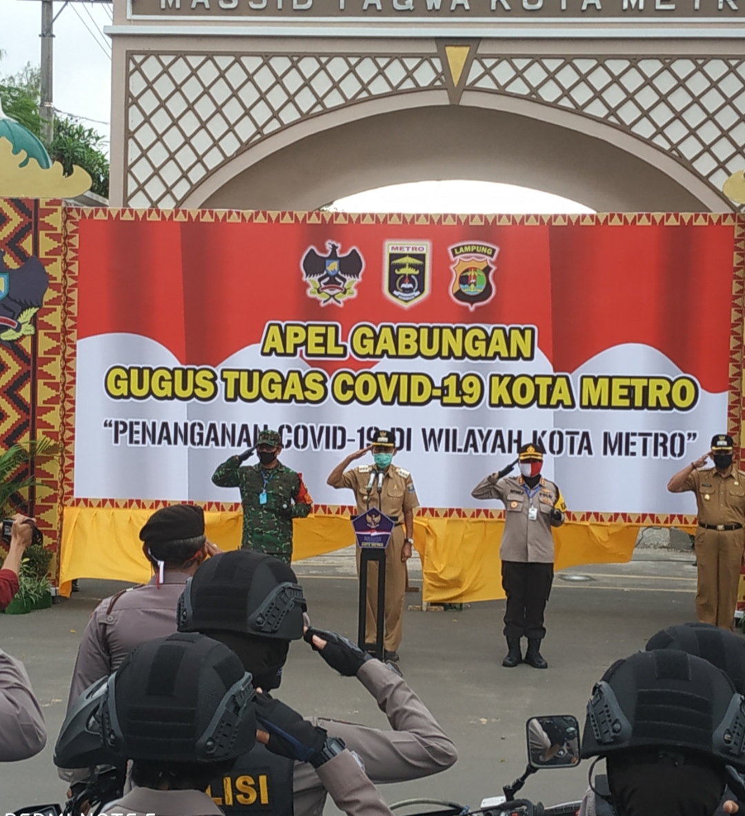 Kegiatan acara Apel Gabungan Gugus Tugas Covid 19 Kota Metro juga dihadiri oleh Walikota Metro Achmad Pairin, Wakil Walikota Metro Djohan, Dandim Kota Metro, Kapolres Kota Metro, seluruh OPD dan tenaga kesehatan. Kegiatan Apel Gabungan juga mengambil tema “Penanganan Covid 19 Di Wilayah Kota Metro”.
