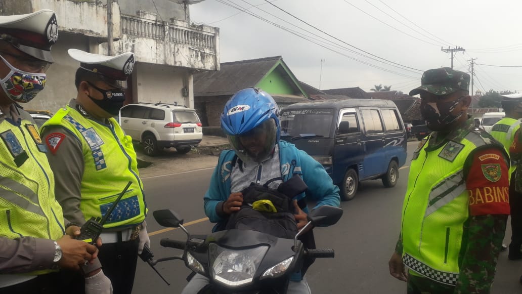 Razia juga didukung puluhan personel gabungan TNI, Polri, Pol PP dan Dishub yang sigap menjaring para pengendara serta pengemudi yang tidak menggunakan masker.