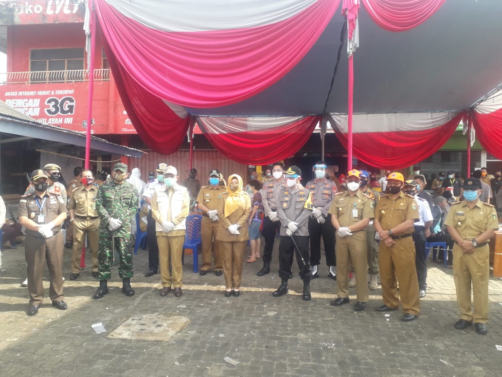 Ditempat sama, Kapolres AKBP Oni Prasetya mengatakan bahwa pihaknya bersama TNI dan instansi terkait melaksanakan pengamanan kegiatan serta melakukan penertiban di jalan raya terhadap masyarakat yang belum patuh memakai masker.