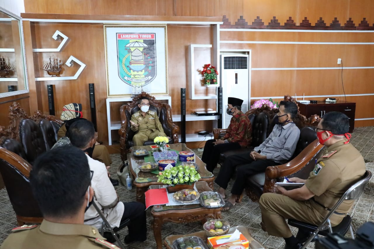 LAMTIM, Cyberkatulistiwa.com – Bupati Lampung Timur Zaiful Bokhari Menerima Audiensi dengan Ketua Dan Pengurus Keramat Krayo Ilo Derahajo Dan Radin Jimat serta Pengurus Penyimbang Adat Kecamatan Jabung di Ruang Kerja Bupati Lampung Timur, Selasa 16 Juni 2020.
