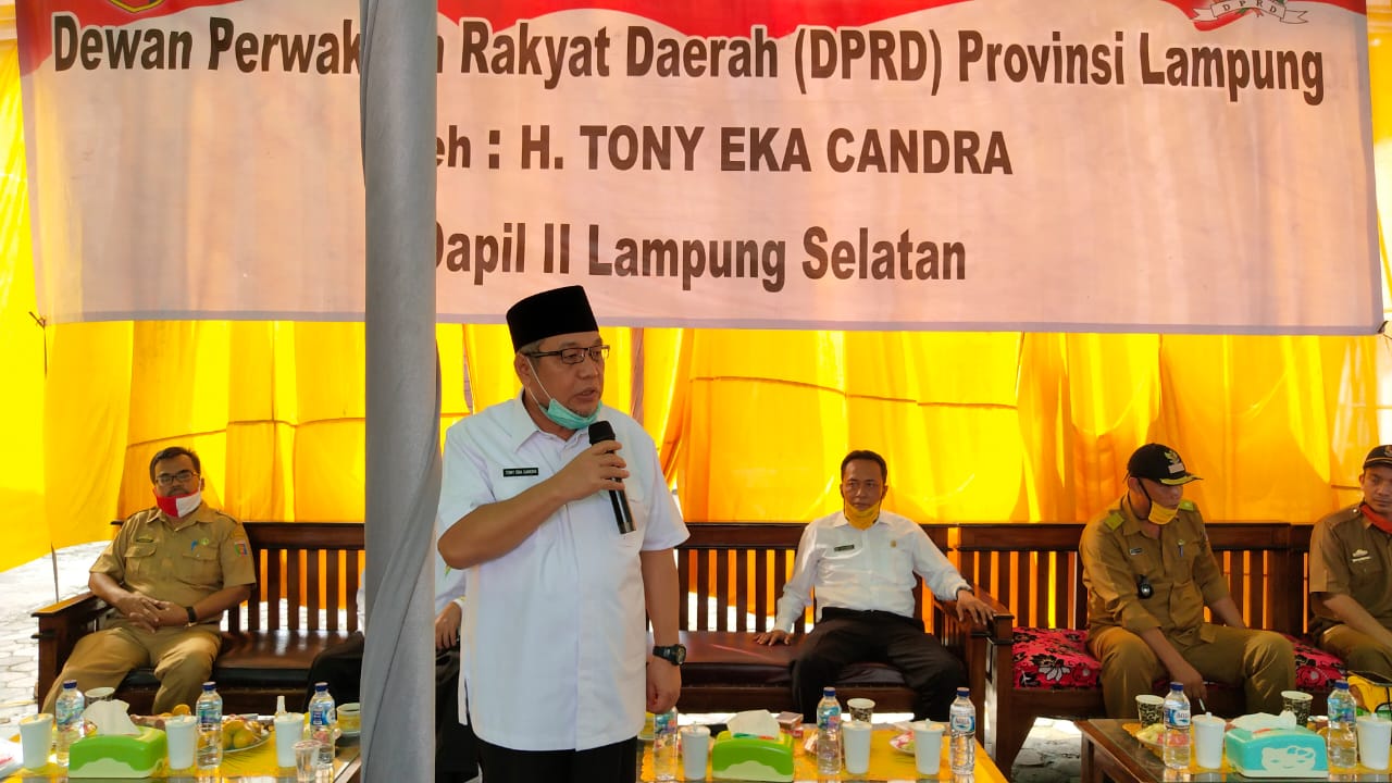 Dalam sambutannya, H. Tony Eka Candra (TEC) yang juga selaku Ketua Forum Anggota DPRD Provinsi Lampung Dapil II Lampung Selatan menjelaskan, bantuan ini sejalan dengan Instruksi serta arahan Ketua DPD Partai Golkar Provinsi Lampung yang juga Gubernur Lampung Bapak Ir. H. Arinal Djunaidi, bahwa Kelembagaan Partai Golkar dan Anggota Fraksi Partai Golkar di Legislatif, baik DPRD Provinsi serta DPRD Kabupaten/Kota wajib berpartisipasi aktif mendukung dan membantu upaya Pemerintah dalam percepatan, pencegahan, penanggulangan penyebaran wabah Covid-19 di daerah masing-masing.