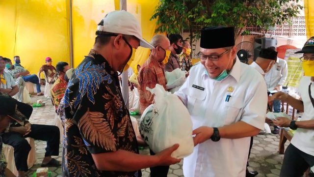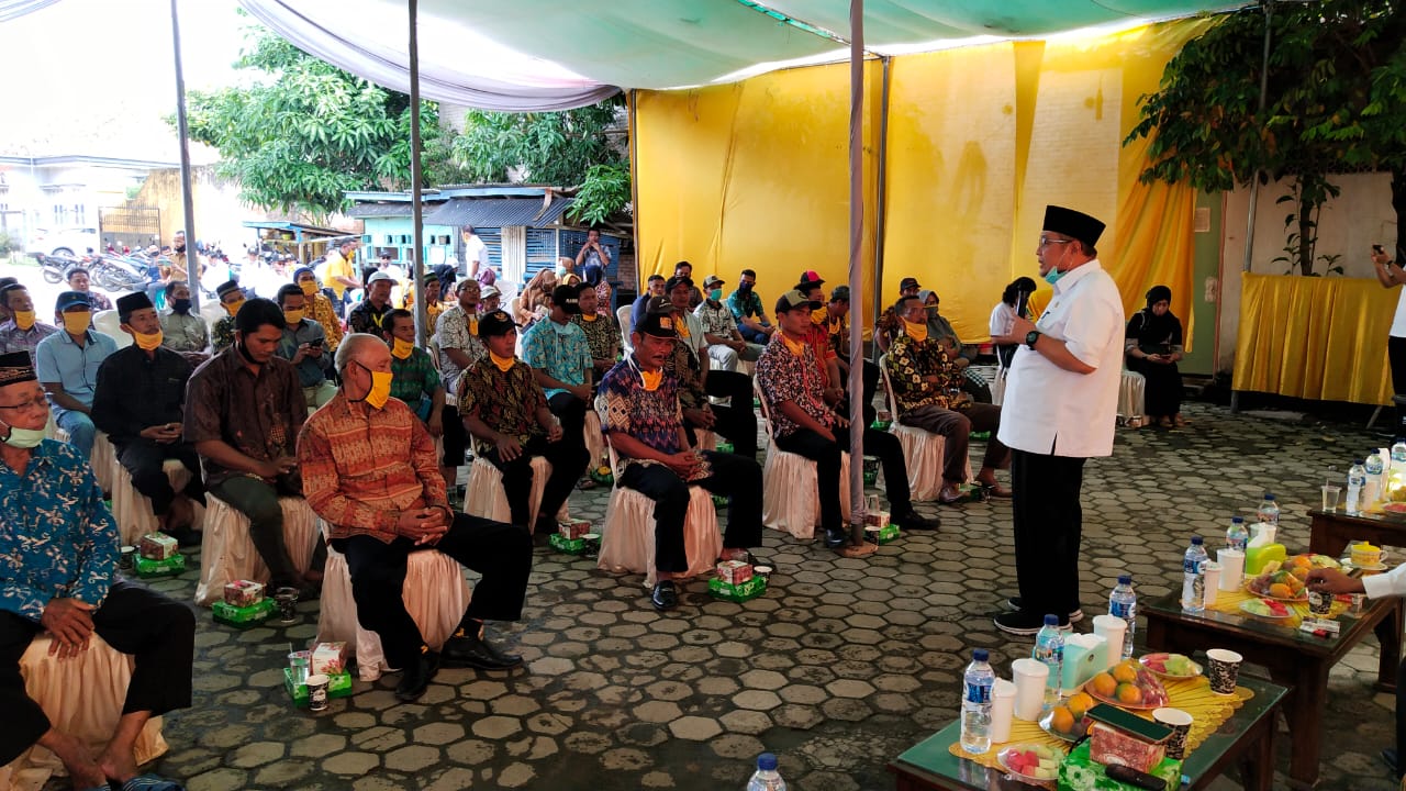 Lampung Selatan, Cyberkatulistiwa.com – Di sela Kegiatan Sosialisasi Perda Nomor 4 Tahun 2018 tentang Penyelenggaraan Pembangunan Ketahanan Keluarga, Ketua Komisi IV DPRD Provinsi Lampung, sekaligus selaku Ketua Fraksi Partai Golkar DPRD Provinsi Lampung H. Tony Eka Candra (TEC) memberikan bantuan masker, serta bingkisan Paket Sembako dari Ketua IIPG (Ikatan Istri Partai Golkar) Provinsi Lampung, Ibu Hj. Riana Sari Arinal, SH, yang digelar di Desa Rawa Selapan, Kecamatan Candipuro Kabupaten Lampung Selatan, Senin, (15/6/2020).