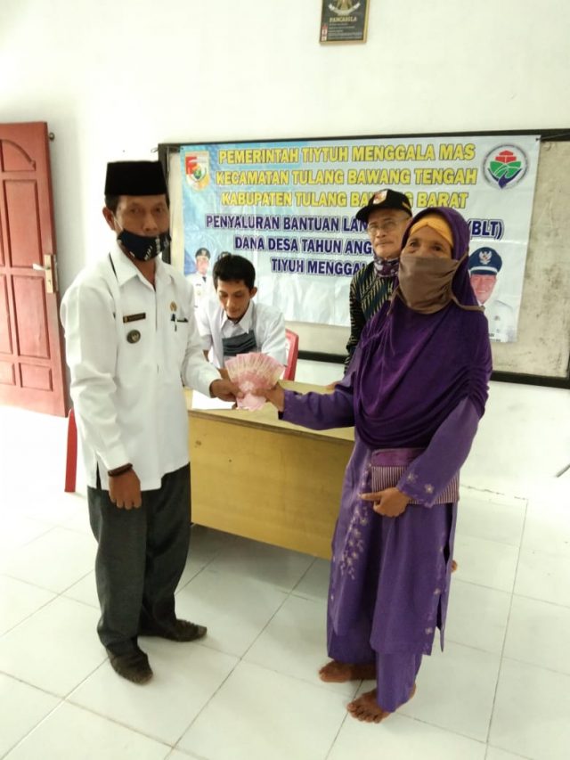 Tubaba, Cyberkatulistiwa.com – Penyaluran Bantuan Langsung Tunai – Dana Desa (BLT – DD) Tiyuh Menggala Mas tahap 3 dibagian kepada 140 penerima manfaat, Rabu (09/07/2020) di Balai Tiyuh Menggala Mas, Kecamatan Tulang Bawang Tengah, Kabupaten Tulang Bawang Barat – Lampung.