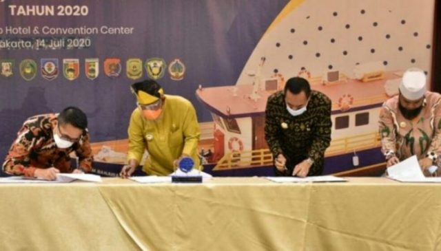 Jakarta, Cyberkatulistiwa.com – Bupati Lampung Timur (Lamtim) Hi. Zaiful Bokhari Menghadiri Penandatanganan Surat Perjanjian dan Berita Acara Serah Terima Hibah Kapal Pelayan Rakyat terhadap Multiyears Contract, di Redtop Jl. Pecenongan 72 Jakarta Pusat, Selasa (14/07/2020 ) .