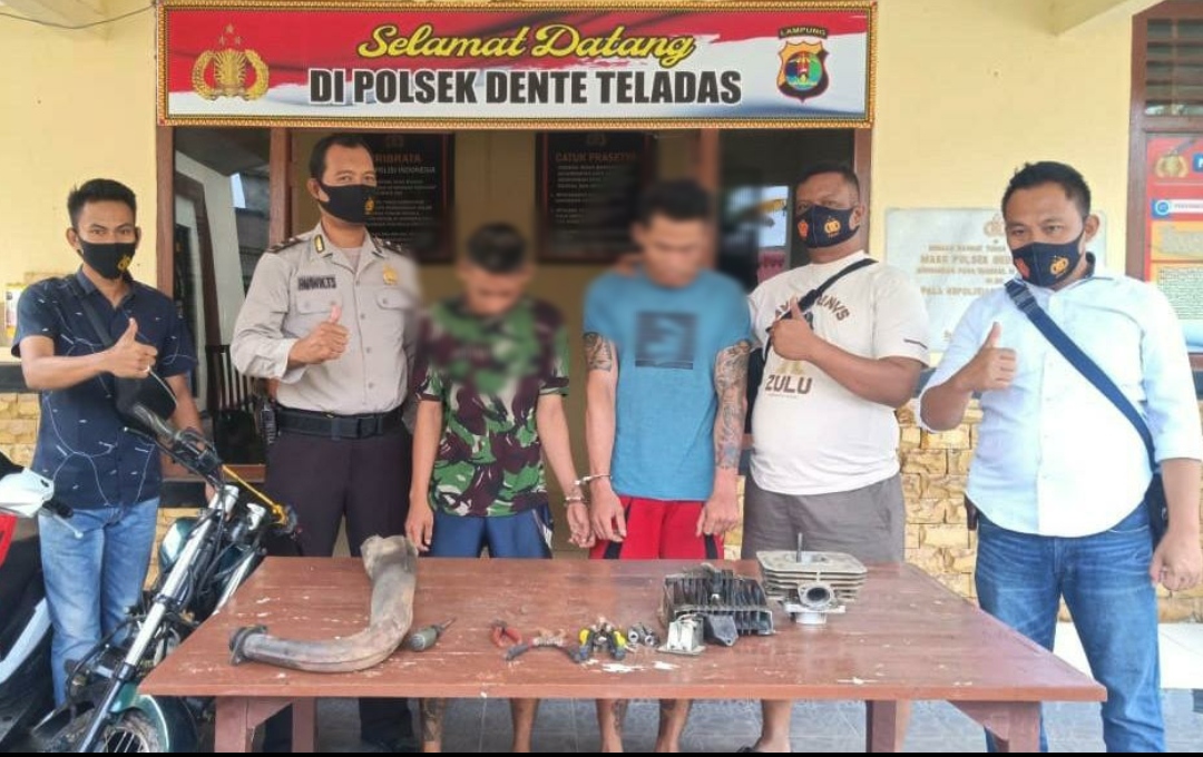 Kapolsek Dente Teladas AKP Rohmadi, SH mewakili Kapolres Tulang Bawang AKBP Andy Siswantoro, SIK mengatakan, dua orang pelaku curanmor tersebut ditangkap oleh petugasnya hari Selasa (04/08/2020), sekira pukul 02.00 WIB, di Dusun Karawang Baru, Kampung Sungai Nibung, Kecamatan Dente Teladas, Kabupaten Tulang Bawang.