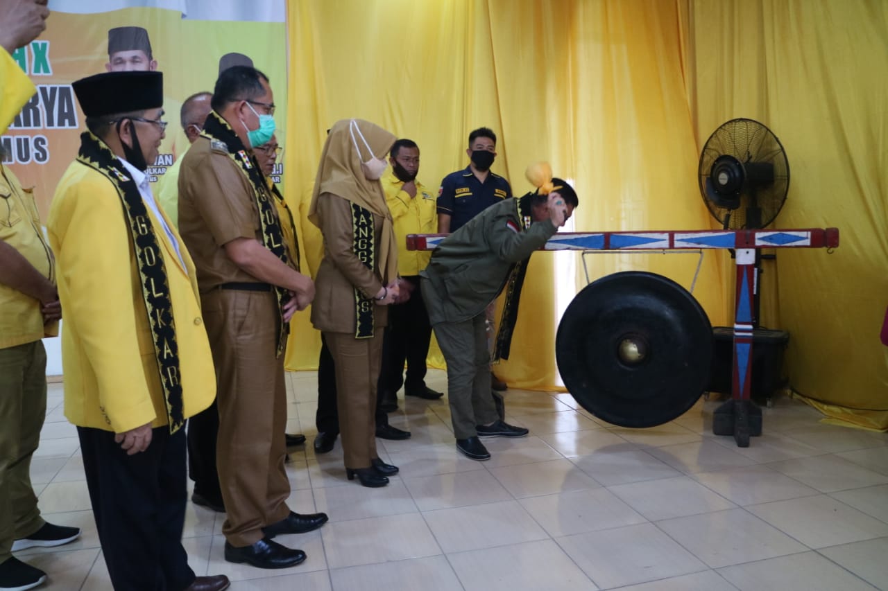 Pembukaan Musda ditandai dengan pemukulan Gong oleh Sekretaris Partai Golkar Provinsi Lampung, Ismet Roni, didampingi Bupati, Wakil Bupati dan Ketua Partai Golkar Kabupaten Tanggamus. (Kominfo).