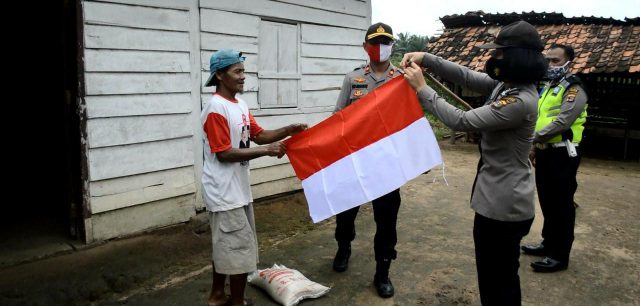 “Hari ini kami secara serentak melaksanakan baksos berupa pendistribusian beras dan membagikan bendera merah putih kepada warga dalam memperingati Hari Ulang Tahun (HUT) Kemerdekaan Republik Indonesia (RI) Ke-75 tahun 2020, pelaksanaannya dilakukan secara langsung dari rumah ke rumah sehingga benar-benar tepat sasaran,” ujar AKBP Andy.