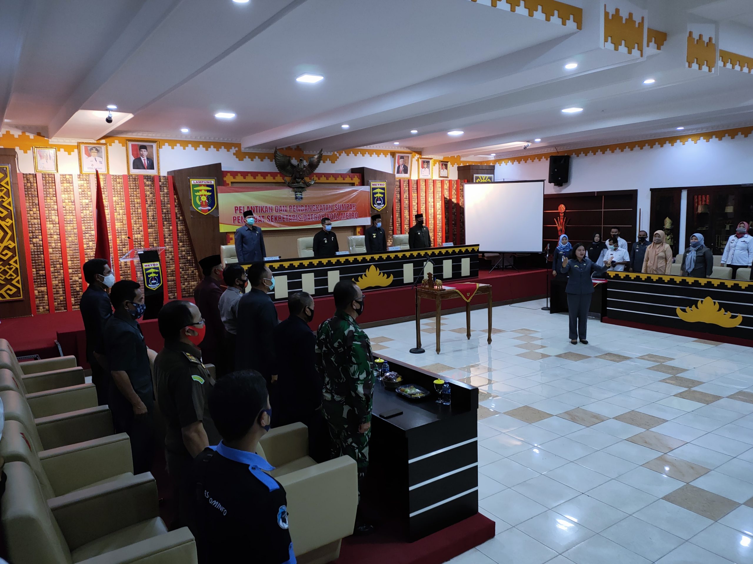 METRO, Cyberkatulistiwa.com – Pemerintah Kota Metro menggelar acara Pelantikan PJ Sekertaris Daerah Kota Metro yang dilaksanakan di Ruang Aula Pemkot Metro, Rabu (26/08/2020).