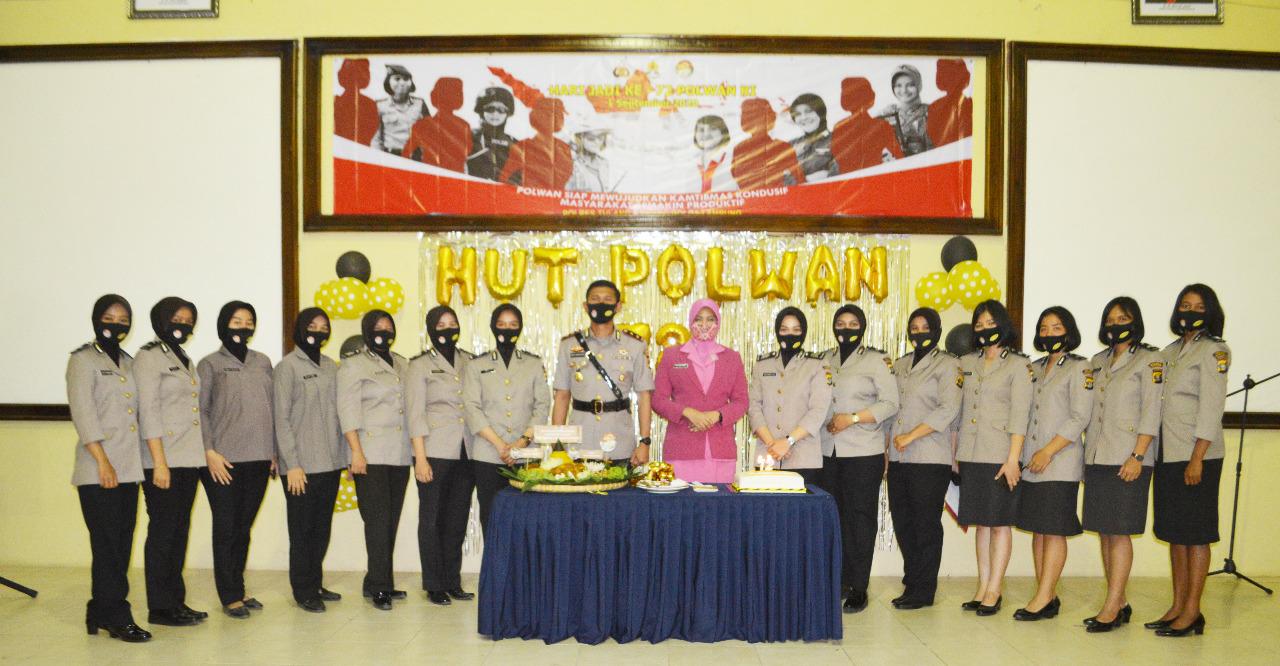 “Saya selaku Kapolres mengucapkan Selamat Hari Jadi Polwan Ke-72 tahun 2020, semoga semakin profesional dalam memberikan perlindungan, pengayoman dan pelayanan kepada masyarakat,” ujar AKBP Andy.