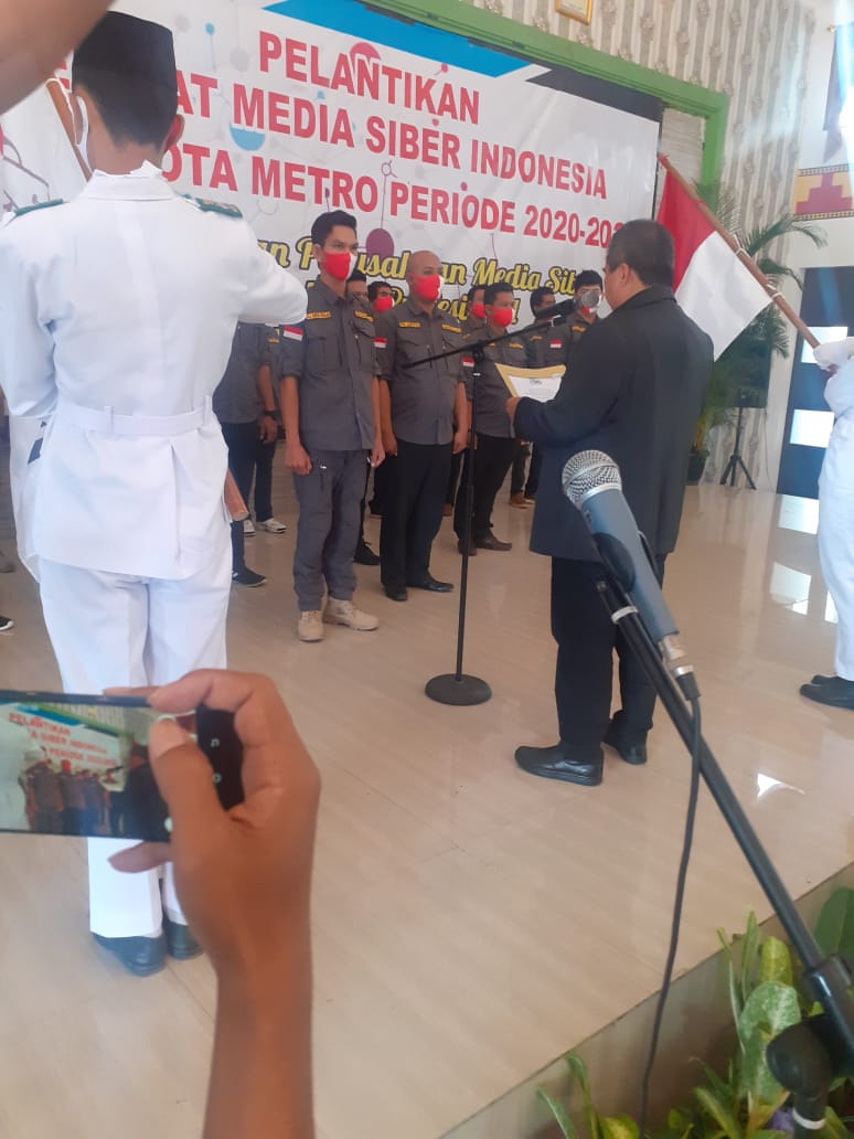 Dalam pelantikan ini, digelar prosesi penyerahan Surat Keputusan (SK) kepengurusan SMSI Kota Metro masa bhakti 2020-2025 oleh Ketua SMSI Provinsi Lampung, Doni Irawan.