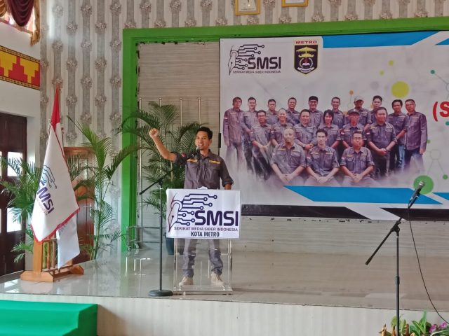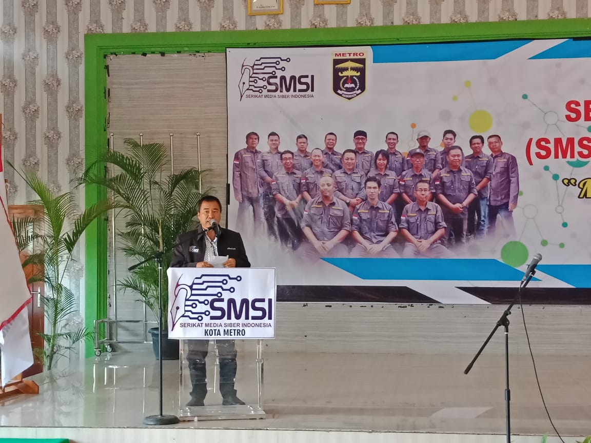 METRO, Cyberkatulistiwa.com – Kepengurusan Serikat Media Siber Kota Metro (SMSI) masa bhakti 2020-2025 dikukuhkan. Organisasi SMSI yang merupakan organisasi perusahaan pers berbasis siber ini, dikukuhkan di Wisma Haji Al Khairiyah, Kota Metro, Rabu, (09/09/2020), pukul 09.30 WIB.