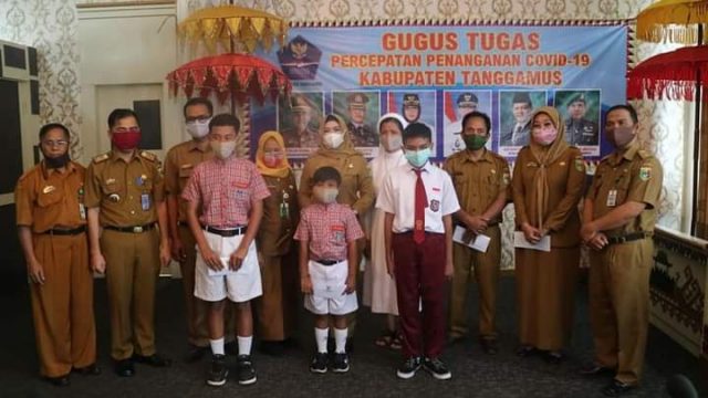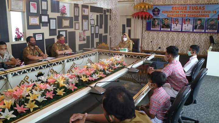 Tanggamus, Cyberkatulistiwa.com – Bupati Tanggamus Hj Dewi Handajani, menerima kunjungan audiensi dari 4 orang Duta Sekolah yang akan mengikuti Lomba Festival Lomba Seni Siswa Nasional (FLS2N) dan Kompetisi Sains Nasional (KSN) Tingkat Nasional Tahun 2020.Senin 2 November 2020.