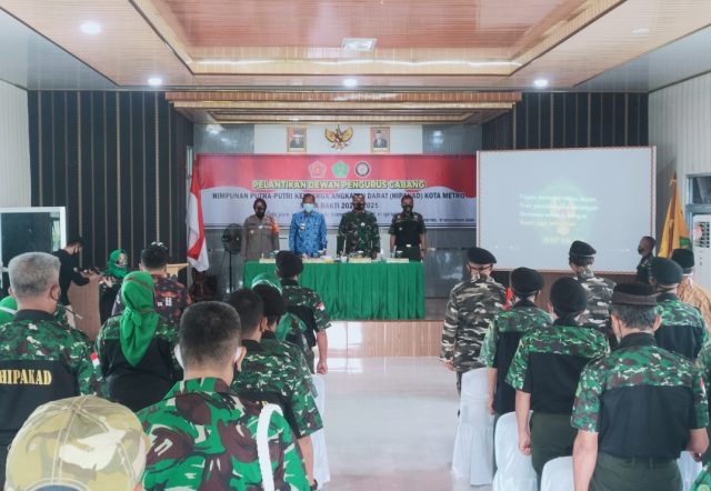 METRO, Cyberkatulistiwa.com – Himpunan Keluarga Putra Putri Keluarga Angkatan Darat (HIPAKAD) Cabang Kota Metro Lampung menggelar acara pelantikan masa bhakti Periode Tahun 2020 – 2025 di Aula Pamungkas Makodim 0411/ LT di Jalan Veteran No.29 Kelurahan Hadimulyo Barat Kecamatan Metro Pusat Kota Metro, Selasa (17/11/2020).