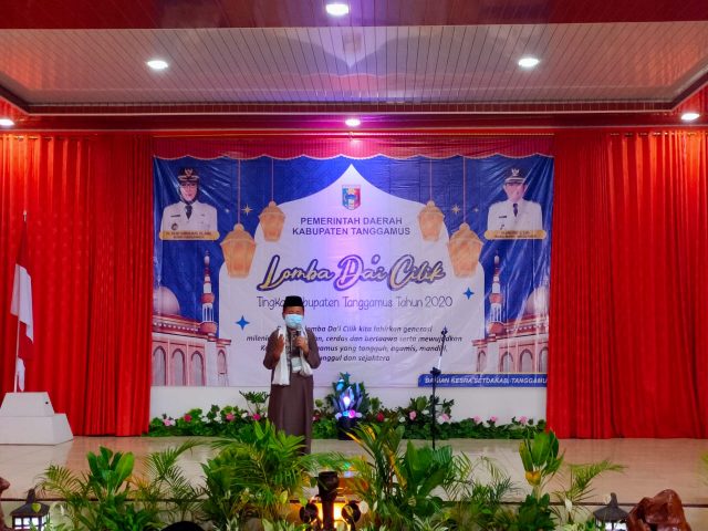 Tanggamus, Cyberkatulistiwa.com – Bupati Tanggamus Hj. Dewi Handajani, menghadiri sekaligus membuka Lomba Da’i Cilik Tingkat Kabupaten Tanggamus Tahun 2020, di GSG Pekon Gisting Bawah, Kecamatan Gisting, Kamis,19 November 2020.