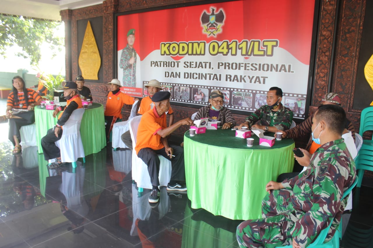 METRO, Cyberkatulistiwa.com – Untuk menjalin silaturrahmi sekaligus pembinaan, Kodim 0411/LT melaksanakan kegiatan Komunikasi Sosial (Komsos) dengan Komponen Bangsa lainnya di Aula Pamungkas Makodim, kali ini bersama Komunitas Sepeda Ontel Kota Metro, Kamis (19/11/2020).