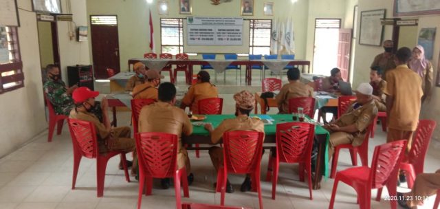 Lamteng, Cyberkatulistiwa.com – Serka Ali Habib Babinsa Koramil 411-10/SM melaksanakan komunikasi sosial (komsos) bersama Kepala Kampung dan dan aparatur kampung di Balai Kampung Rejosari Mataram Kecamatan Seputih Mataram Kabupaten Lampung Tengah. Senin (23/11/2020).