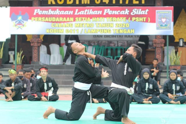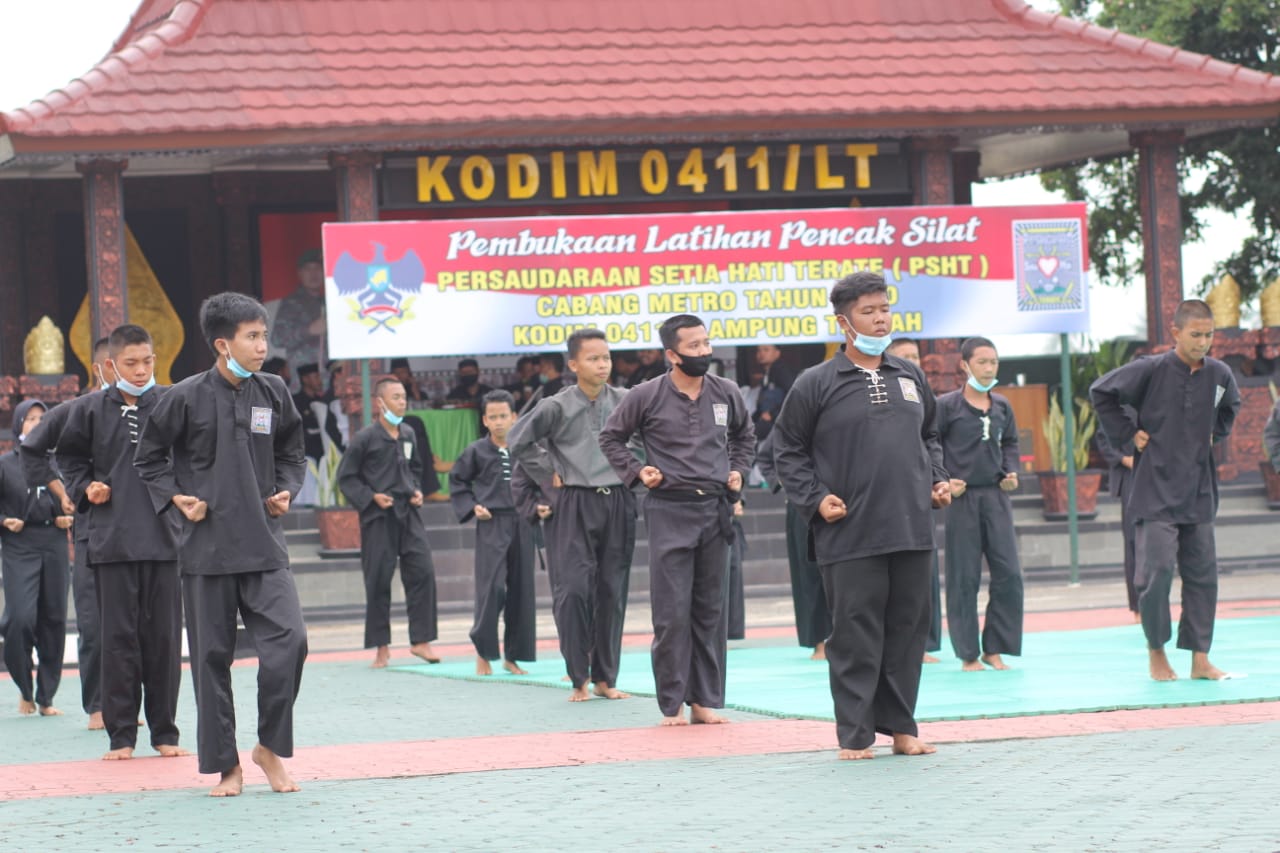 METRO, Cyberkatulistiwa.com – 350 Pesilat dari Persaudaraan Setia Hati Terate (PSHT) Cabang Metro melaksanakan Upacara Pembukaan Latihan di Lapangan Apel Makodim 0411/LT Jalan Veteran No 29, Bedeng 22 Hadimulyo Barat Kota Metro. Minggu (29/11/2020).