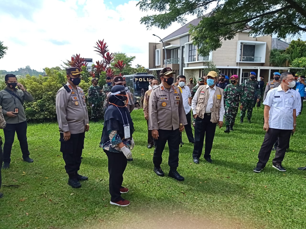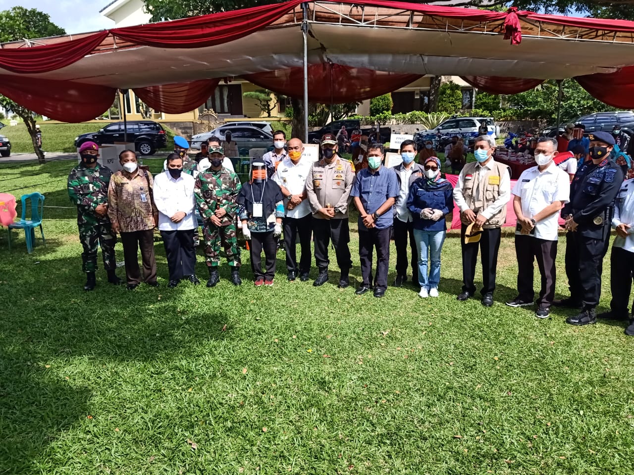 Kapolda Lampung Irjen Pol Purwadi Arianto. Kabinda Lampung Brigjen TNI Ign. Wahyu Hadi Prasetyo. Danbrigif 4 Mar/BS Kolonel Mar Nawawi.Tim Monitoring Kementerian Dalam Negeri IPDN Didik Suprayitno. Kajati Lampung Heffi Nur. Asisten 1 Pemerintahan dan Kesra Pemprov Lampung Irwan S. Marpaung.