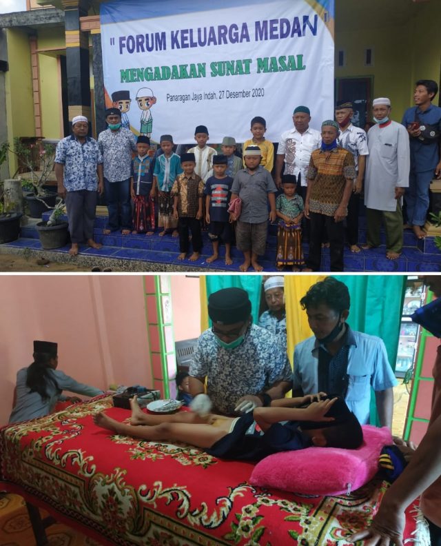 TuBaBa, Cyberkatulistiwa. Com – Forum Keluarga Medan, (FKM) melakukan kegiatan sosial sunatan masal dan berbagi bingkisan, Minggu (27/12/2020).
