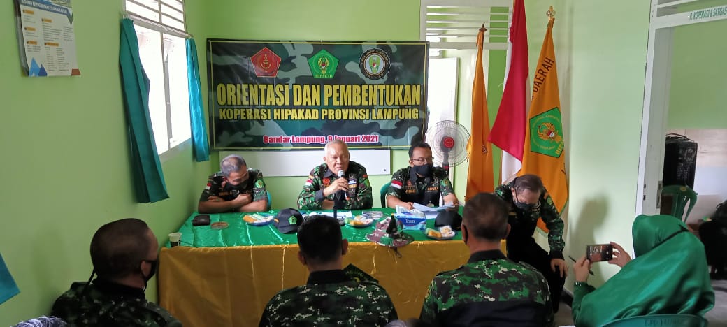 BaLam, Cyberkatulistiwa.com – Dewan Perwakilan Daerah (DPD) Himpunan Putra – Putri Keluarga Angkatan Darat (HIPAKAD) Provinsi Lampung menggelar acara Orientasi dan Pembentukan Koperasi Provinsi Lampung di Aula Sekertariat Kantor DPD HIPAKAD di Bandar Lampung Provinsi Lampung, Sabtu (09/01/2021).