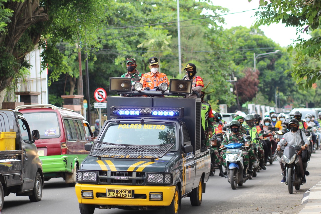 Setelah pelaksanaan apel, kegiatan dilanjutkan dengan Sosialisasi Penegakkan Displin Prokes berdasarkan Perwali Nomor 39 Tahun 2020 di wilayah Kota Metro sampai tanggal 25 Januari 2021 meliputi wilayah Kecamatan Metro Pusat, Metro Utara, Metro Barat, Metro Timur dan wilayah Kecamatan Metro Selatan.