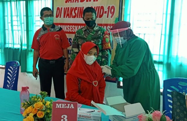 METRO, Cyberkatulistiwa.com – Babinsa Koramil Jajaran Kodim 0411/LT melaksanakan pendampingan Vaksinasi Sinovac terhadap tenaga kesehatan di wilayah binaan setelah pencanangan Vaksinasi Covid 19 tingkat Kabupaten Lampung Tengah dan Kota Metro diawali oleh Forkopimda, Sabtu (30/01/2021).
