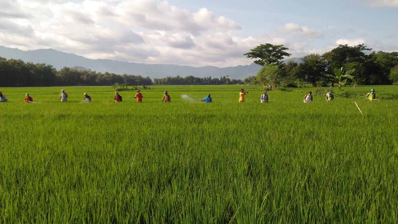 Gerakan aplikasi pemakaian POC selain diikuti petani anggota Poktan Bancaran, gerakan aplikasi POC juga dihadiri Tiga Pilar Desa Bancar, PPL Desa Bancar dan BPP Kecamatan Bungkal. (Muh Nurcholis).