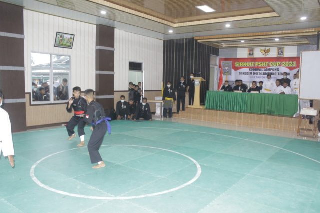 METRO, Cyberkatulistiwa.com – Markas Komando Distrik Militer (Makodim) 0411/LT menjadi sarana/wadah digelarnya kegiatan Sirkuit PSHT Cup 2021 yang diikuti oleh 126 atlet pesilat, Sabtu (13/02/2021).
