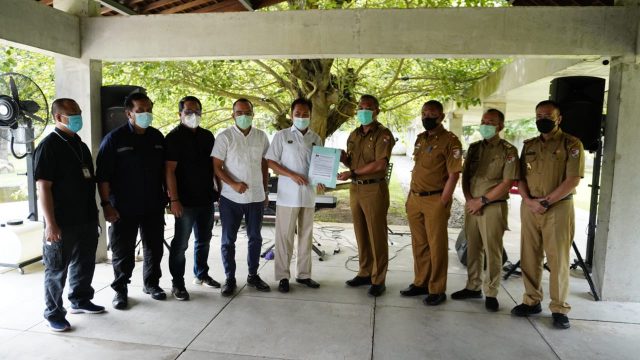 TuBaBa, Cyberkatulistiwa. Com – Bupati Tulang Bawang Barat Umar Ahmad SP menerima penyerahan Surat Keputusan (SK) Penetapan Kuota Jenis Bahan Tertentu (JBT) dan Jenis Bahan Bakar Khusus Penugasan (JBKP) Tahun 2021 kabupaten setempat, dari Badan Pengatur Hilir (BPH) Minyak dan Gas Bumi (Migas) di berugo cottage komplek islamik center. Senin (08/03/2021).