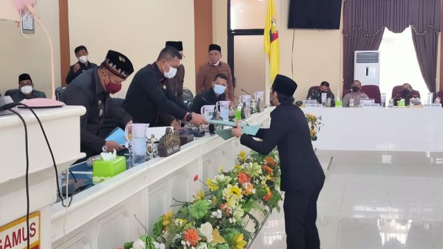 Tanggamus, Cyberkatulistiwa.com – Wakil Bupati Tanggamus Hi. AM. Syafi’i, menghadiri Rapat Paripurna DPRD Kabupaten Tanggamus dengan agenda Penyampaian Laporan Hasil Pembahasan, Persetujuan DPRD dan Pendapat Akhir Kepala Daerah Atas Dua Rancangan Peraturan Daerah (Ranperda) Kabupaten Tanggamus, Selasa 8 Maret 2021.