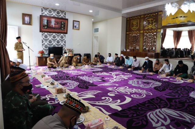 LamBar, Cyberkatulistiwa.com – Bupati Lampung Barat menghadiri acara Pengajian Dalam Rangka Isra Mi’raj Nabi Muhammad SAW sekaligus acara penyerahan Insentif kepada Guru ngaji, Marbot dan Imam Masjid di 23 Maret 2021, di Lamban Dinas Bupati Lambar, Komplek Kebun Raya Liwa Pekon Kubu Perahu, Kecamatan Balik Bukit, Selasa (23/03/2021).