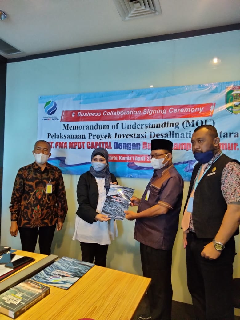 Lanjut Bupati Lamtim, pihak nya meminta waktu untuk berkordinasi lebih lanjut, untuk mendalami draf MOU yang secara simbolis telah diserahkan kepada kami. Kami akan pelajari lebih lanjut untuk mematangkan lebih lanjut dan memastikan tempat lokasi pabrik dan mesin pengolahan air laut menjadi air minum.