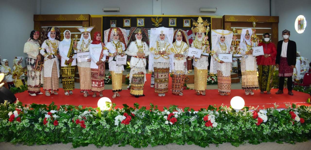 Adapun para Juara yakni, Juara 1 Pakaian Mirul yang dipakai Istri dari Camat Lambu Kibang, Juara 2 Pakaian Kanduk Andak Istri Kabag Ekonomi, dan Juara 3 Pakaian Pengantin Megow Pak Istri Kepala Dinas Pendidikan, sementara untuk Juara Harapan 1 Pakaian Sebagi Andak Tengah Istri Kepala Dinas Perkimta, Harapan 2 Pakaian Bebai Tohou Istri Kepala BPKAD, dan Harapan 3 Pakaian Sebagi Sekebar Istri Kepala Bappeda. (Iwan).