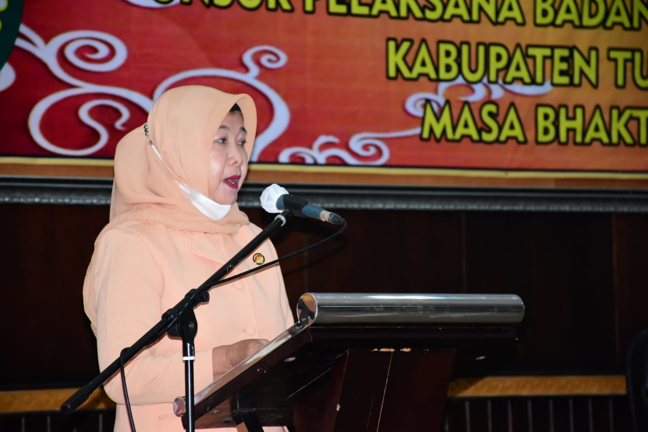 TuBaBa, Cyberkatulistiwa.com – Pengukuhan Pengurus Dharma Wanita Persatuan (DWP),Unsur Pelaksana Badan/ Dinas/ Kantor dan Kecamatan Kabupaten Tulang Bawang Barat masa bhakti 2021 – 2024 oleh Ketua Dharma Wanita Persatuan Kabupaten Tulang Bawang Barat (TuBaBa), Ny. Novianti Novriwan. Di Aula Sekretariat Pemerintah Kabupaten (Pemkab), setempat, Kamis (08/04/2021).