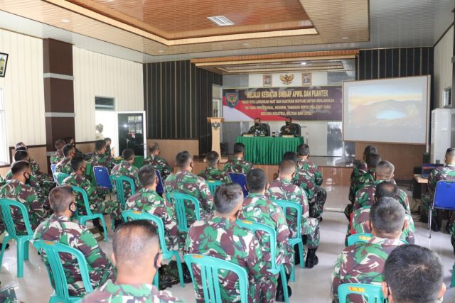 METRO, Cyberkatulistiwa.com – Kodim 0411/LT melaksanakan Pembinaan Kesiapan (Binsiap) Aparat Komando Kewilayahan (Apwil) dan Kemampuan Teritorial (Puanter) Tahun 2021 dengan tema ‘Mari Kita Luruskan Niat dan Kuatkan Ikhtiar Untuk Menjadikan TNI yang Profesional,Modern, Tangguh Serta Prajurit yang Berjiwa Ksatria, Militan dan Loyal’ bertempat di Aula Pamungkas Makodim 0411/LT Jln. Veteran 22 Hadimulyo Barat Kota Metro. Kamis (08/04/21).