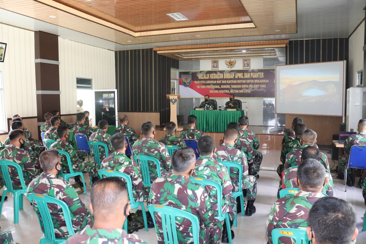 “Kegiatan ini juga bertujuan untuk menyamakan kembali visi misi untuk para Danramil dan Babinsa Jajaran Kodim 0411/LT di dalam melaksanakan tugas Komando Kewilayahan, selain itu juga kegiatan Binsiap Apwil dan Puanter ini merupakan bagian yang sangat penting bagi kesiapan seluruh aparat kewilayahan dalam menjalankan fungsi pembinaan teritorial sekaligus sebagai fungsi utama di tubuh TNI AD” tambahnya.