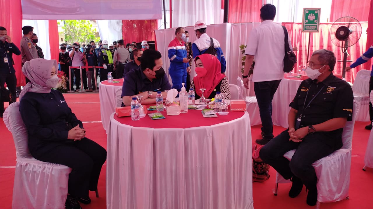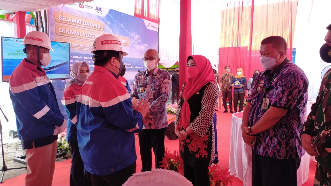 Sementara Bupati Dewi Handajani mengatakan, kedatangan Menteri BUMN itu dalam rangka meresmikan VLCC Pertamina Pride yang bisa mengangkut bahan bakar minyak (BBM) 2 juta barel.