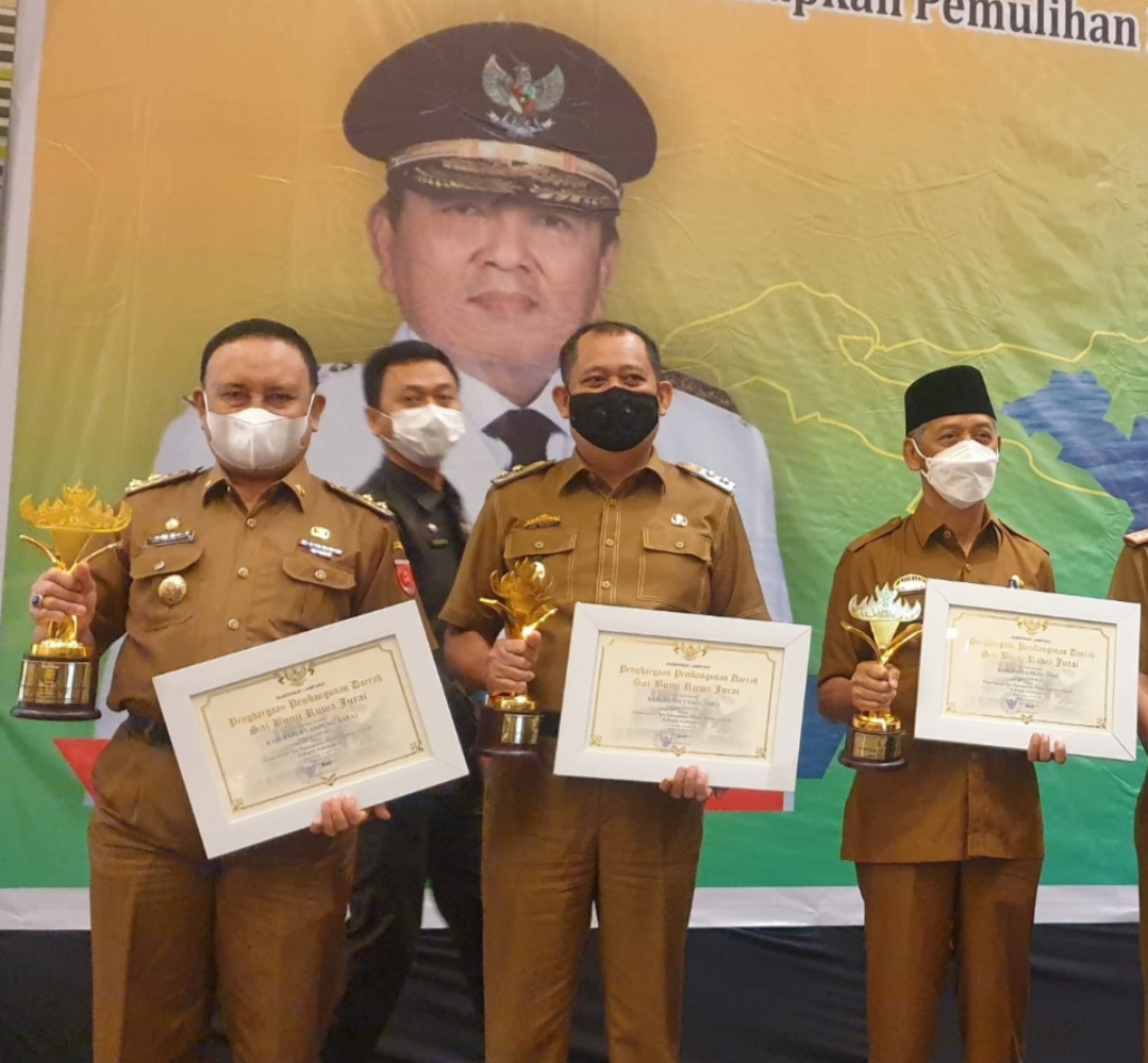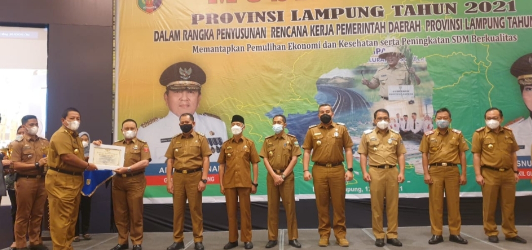 Penghargaan itu diterima langsung Wakil Bupati (Wabup) Lambar Drs. Hi. Mad Hasnurin pada Senin (12/4/2021) di grand ball room Hotel Novotel Bandar Lampung, saat menghadiri Musyawarah Perencanaan Pembangunan (Musrenbang) Tahun 2021 dalam rangka penyusunan Rencana Kerja Pemerintah Daerah (RKPD) Provinsi Lampung tahun 2022.