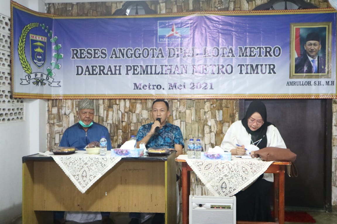 METRO, Cyberkatulistiwa.com – Sekertaris Komisi I DPRD Kota Metro, Amrulloh SH, MH, Guna menyerap aspirasi masyarakat, menggelar reses masa sidang II di kelurahan Iringmulyo, Kecamatan Metro timur, Jumat (28/5/2021).