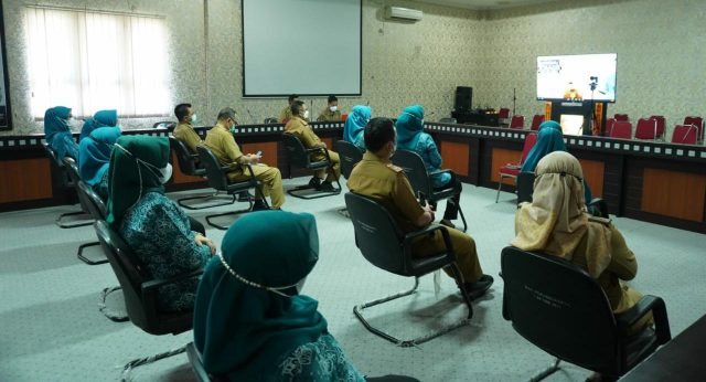 TuBaBa, Cyberkatulistiwa.com – Ketua TP-PKK Tulang Bawang Barat Hj. Kornelia Umar SH, MH menghadiri rapat kerja daerah TP-PKK Provinsi Lampung tahun 2021 di Ruang Rapat Bupati, Senin (31/05/2021).