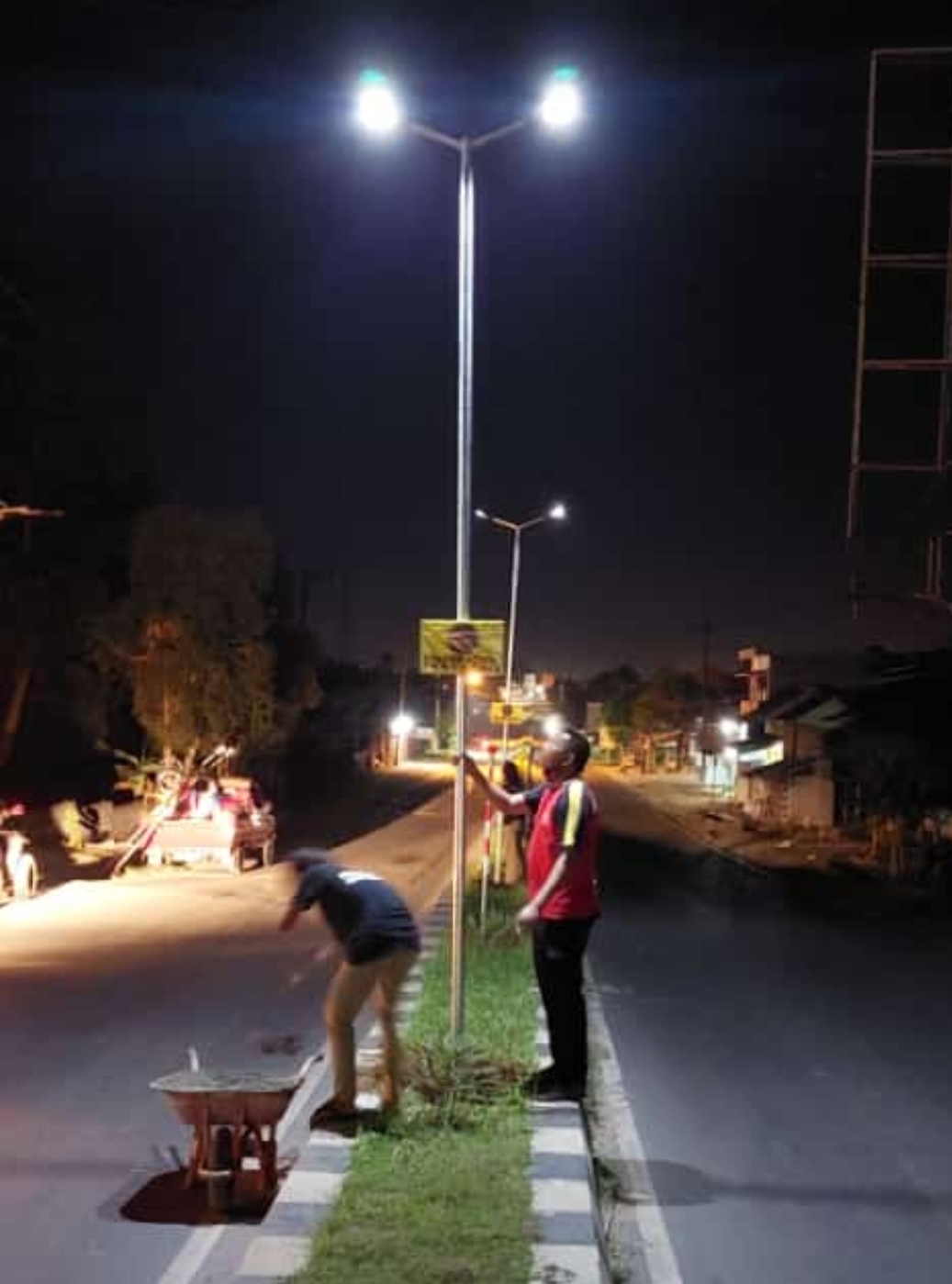 METRO, Cyberkatulistiwa.com – Dikarenakan kondisi gelap disaat malam tiba, Warga Kecamatan Metro Kota Metro yang tergabung di bawah naungan PT. Nestro Saka Wardhana (Trader Kampungan) kembali memasang lampu jalan, khususnya pada Penerangan Jalan Umum (PJU) di kawasan jalur dua Jalan Pattimura Kecamatan Metro Utara Kota Metro yang sering mengakibatkan terjadinya kecelakaan lalu lintas, Rabu (09/06/2021).