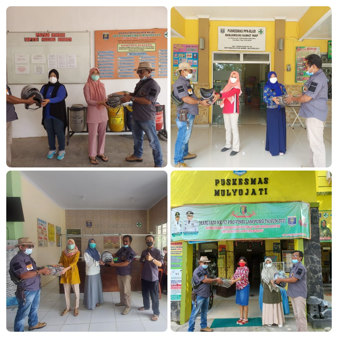 Treder Kampungan kembali menyalurkan bantuan Alat Pelindung Diri (APD) ke 7 Puskesmas di Kota Metro seperti, Pelindung Wajah, Gaun Medis dan Sarung Tangan Medis.